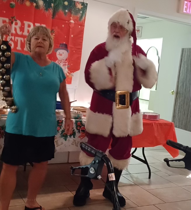 At churches I have done breakfast with Santa and dinner with Santa. But 12 years ago I approached our pastor and asked if I could be Santa at the Children’s mass. He thought it was a good idea. At the end of mass father asks the kids, “Do you hear that.” At that point I start ringing my bells, the church gets quiet as a church mouse, and I proceed down the church aisle holding up high a gift for baby Jesus. I go to the manger, take my hat off, kneel down, put the gift next to the Baby Jesus and say a prayer. After I get up, put my hat on, and as I am leaving I wish everyone a “Blessed and Merry Christmas.” You would not believe the amount of adults who come up to me afterwards saying, “I cried when you went up to the manager and showed the children the true meaning of Christmas, not Santa but the Birth of Jesus.”